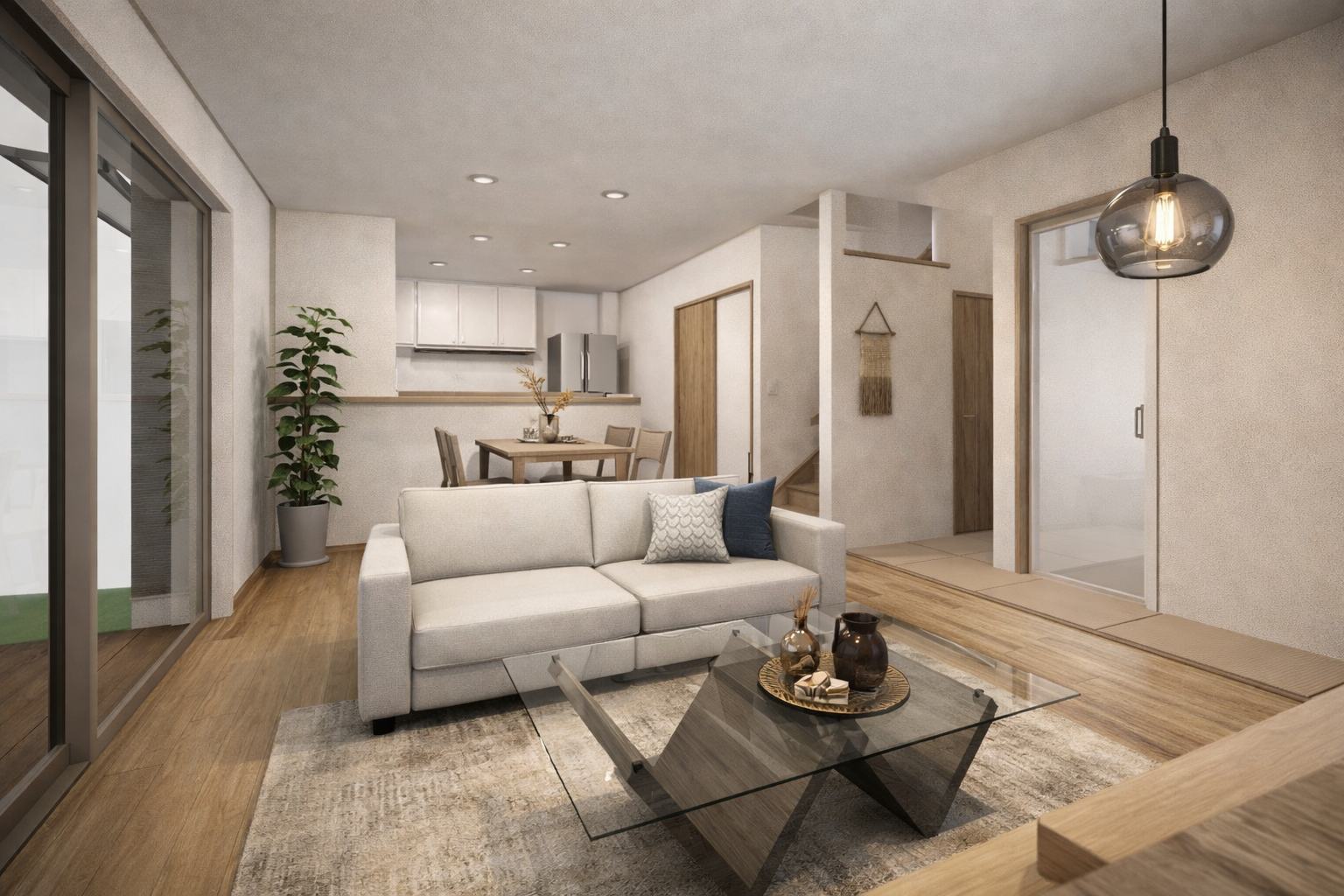 ソファとダイニングの距離感、動線、収納配置まで、すべてがちょうどいい。