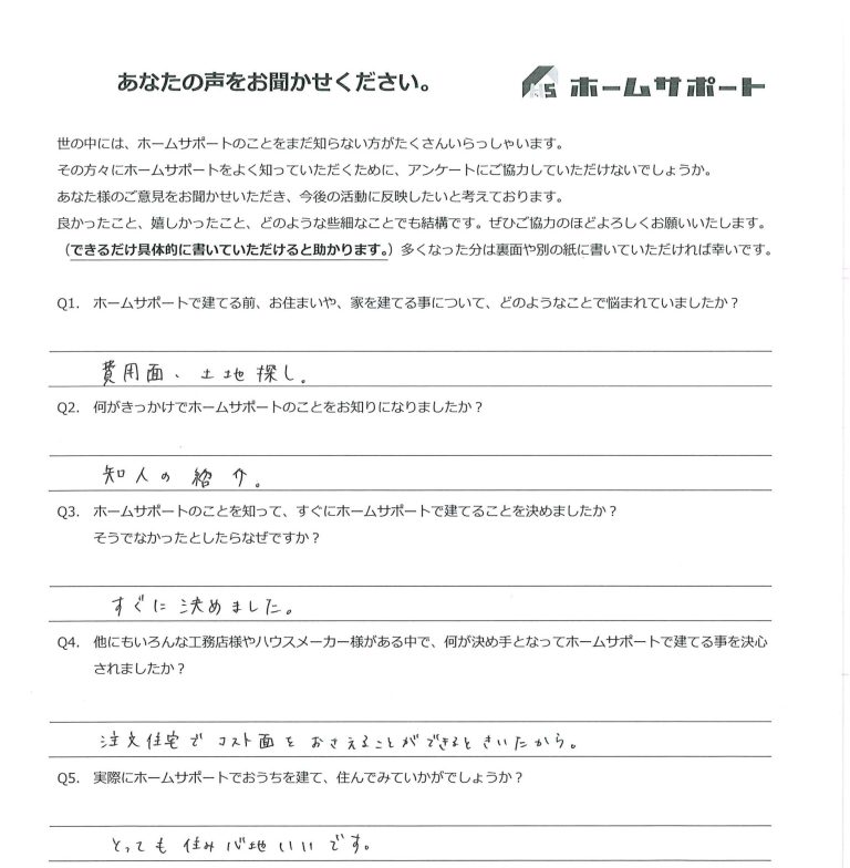 ホームサポートの事を知って、すぐにホームサポートで建てることを決めましたか?