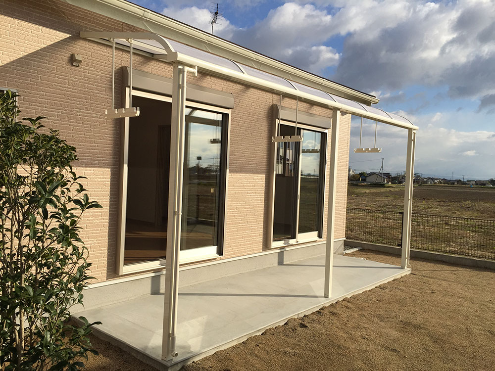こちらのおうちは掃き出し窓に屋根を付けてテラススペースに。こういったカスタマイズをしやすいのもLo-Hausのメリットと言えます。