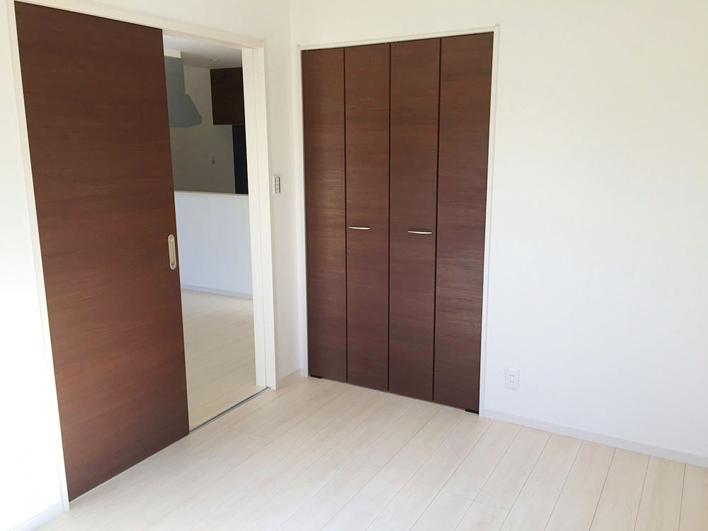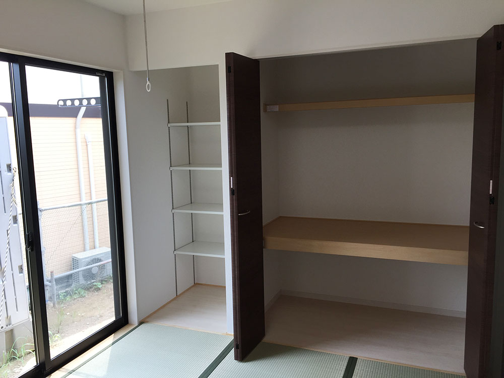 こちらのおうちではオプションで南側の日当たりの良い居室の一つに物干しスペースを付けることで簡単に部屋干しができるようにしています。