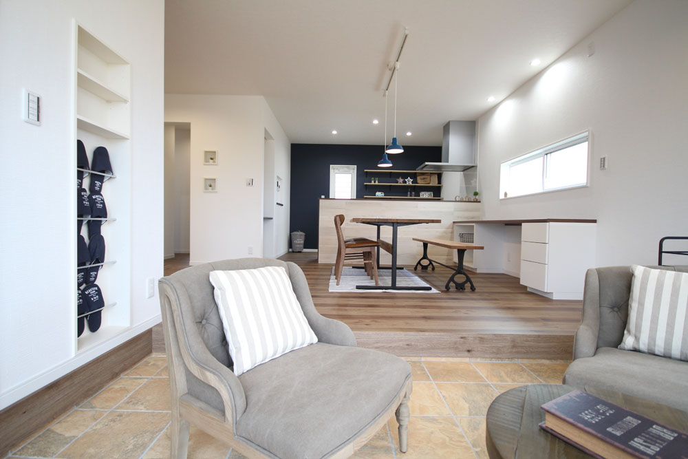 カフェ風の家が流っているが、本当にカフェがある家は滅多にないので、カフェ設備を盛り込んだ家にしました。