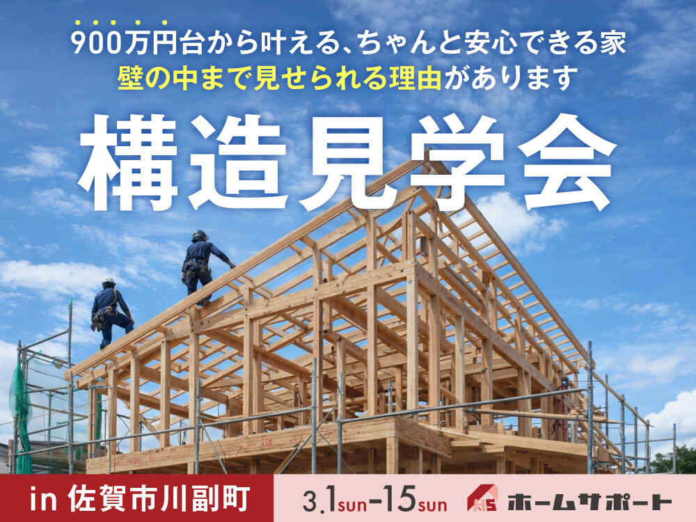 限られたご予算でも、家族が安心して暮らせる家をつくりたい。ホームサポートは、佐賀県で丁寧な工事管理と職人の技にこだわり、900万円から家づくりができるローコスト住宅をお届けしています。派手な宣伝よりも「建てた人の満足」が何よりの証で、多くのご家族に選ばれてきました。アフターサポートや定期点検も続けながら、ずっと寄り添う存在でありたいと思っています。「やっぱりこの家が心地いい」と思える毎日を、一緒につくりませんか。