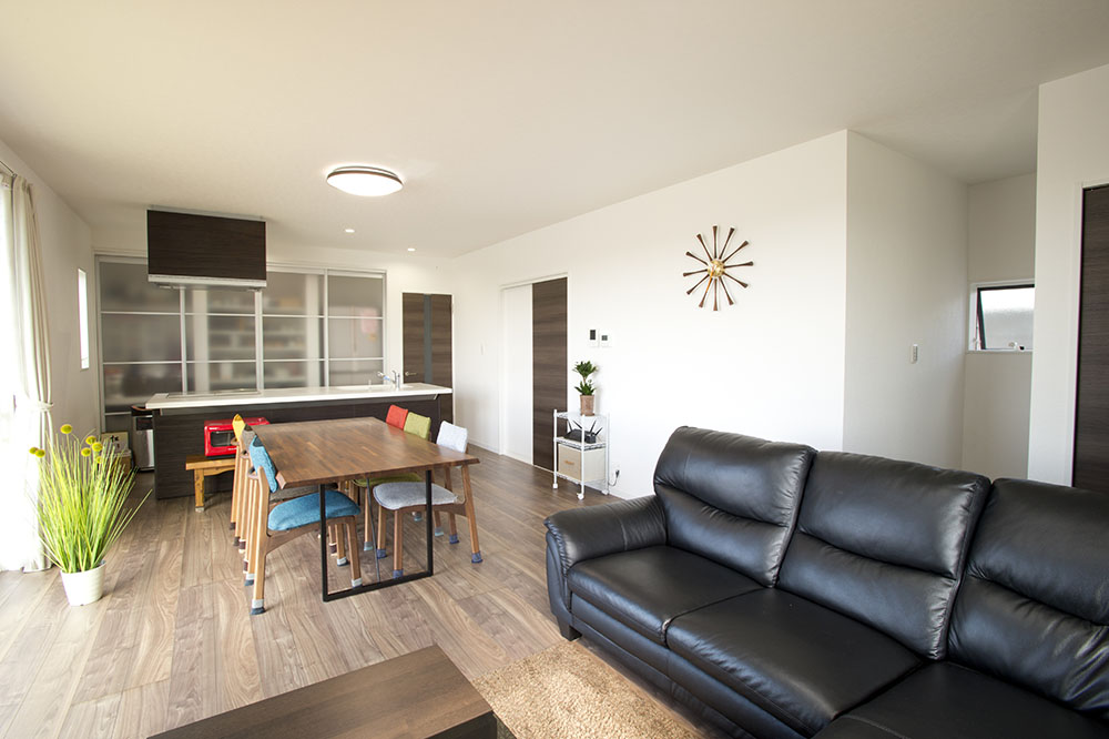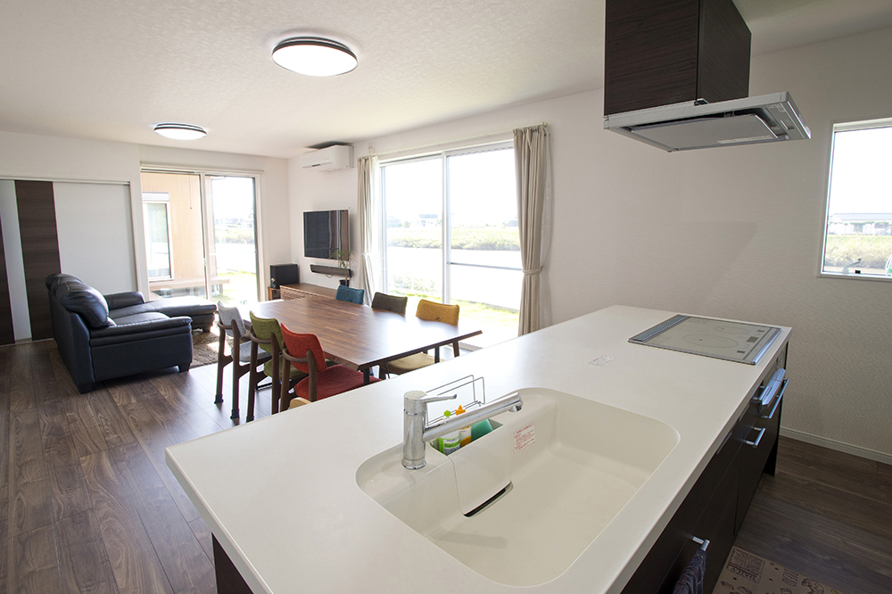 LDKも大家族仕様で自由に動けるアイランドキッチンを備え、家族が思い思いに過ごせるゆったり空間。