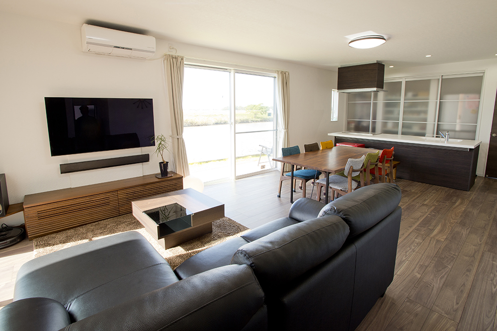 LDKも大家族仕様で自由に動けるアイランドキッチンを備え、家族が思い思いに過ごせるゆったり空間。